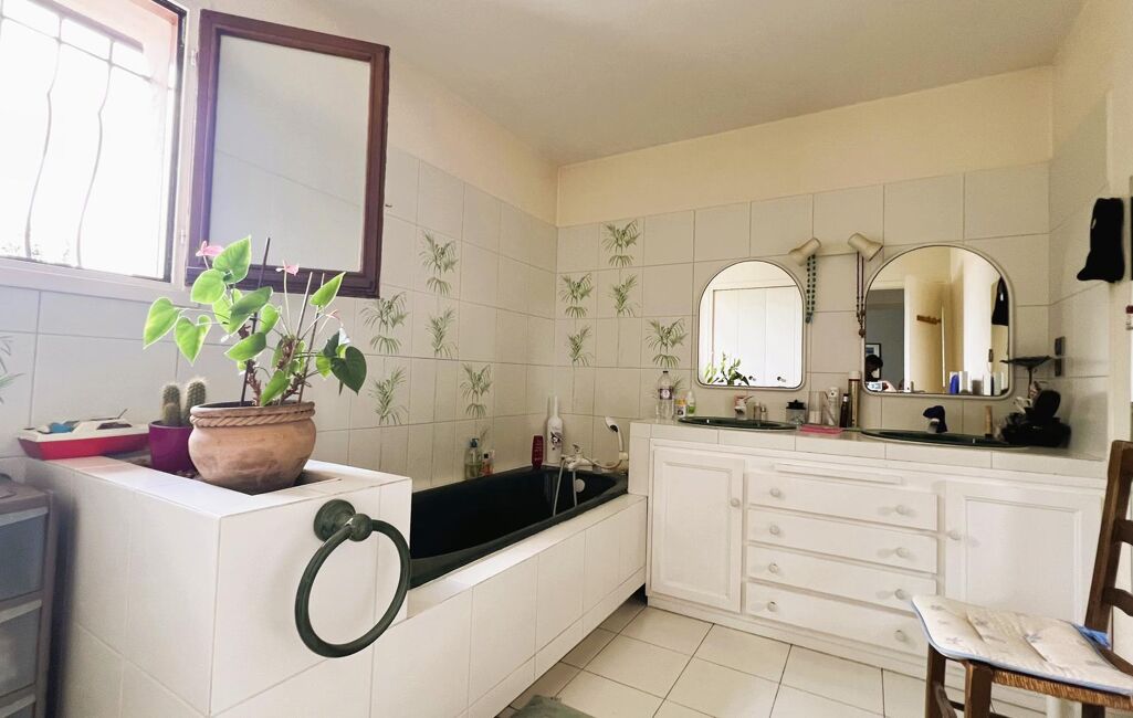De plain-pied hall, salon/séjour, cuisine séparée aménagée, une Chambre, cellier buanderie. A l'étage 3 chambres, salle de bains et salle d'eau.