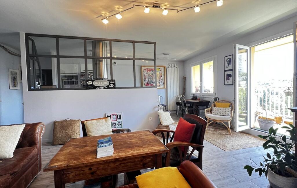 Belle pièce de vie incluant séjour/ cuisine et accès direct au balcon avec vue dégagée, un salon attenant de 13m². Le coin nuit est organisé avec trois chambres, deux salles d'eau et Wc indépendants. Une cave et une place de parking individuelle. Au calme et très lumineux, à proximité immédiate des commerces et des transports en commun.