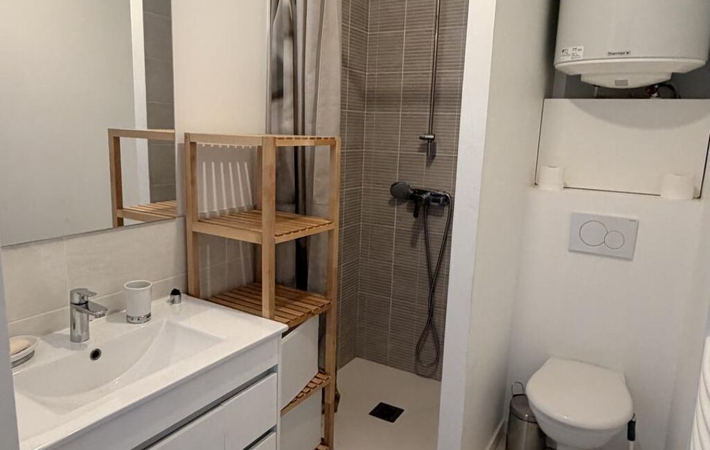 Composé d'une entrée avec rangement, une pièce à vivre de 18.60 m² avec cuisine meublée et équipée et une salle d'eau avec douche et WC