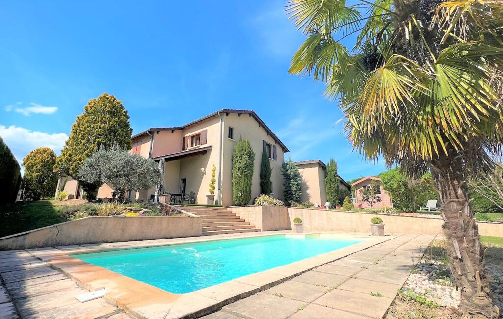 A vendre Dommartin, belle villa familiale d'environ 214m² organisée avec 5 chambres dont une de plain-pied, beau séjour avec cheminée, salon de 70m², 2 salles de bains une salle d'eau, belle cuisine équipée, buanderie.