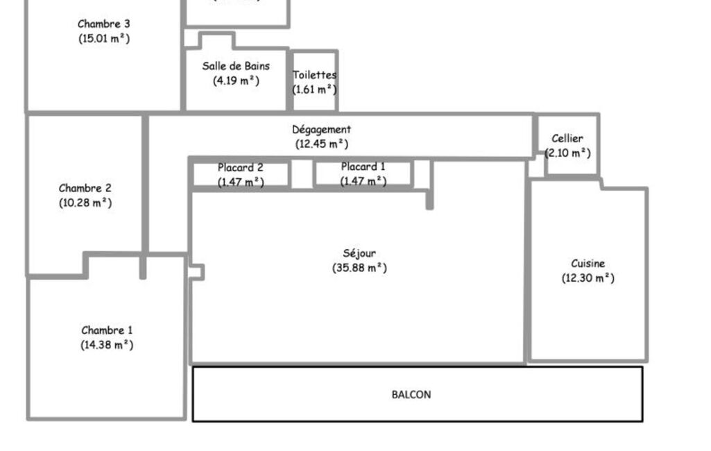 - Surface du balcon : 15 m²