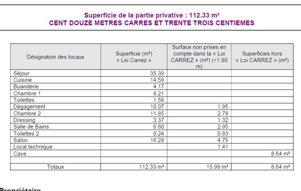 • Surface carrez : 112 m²