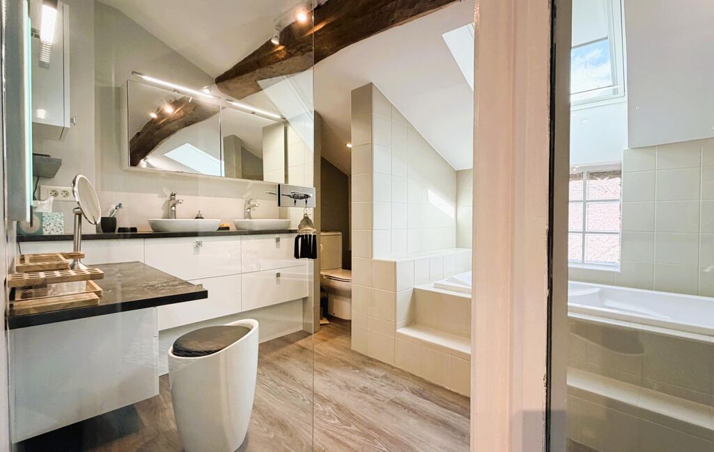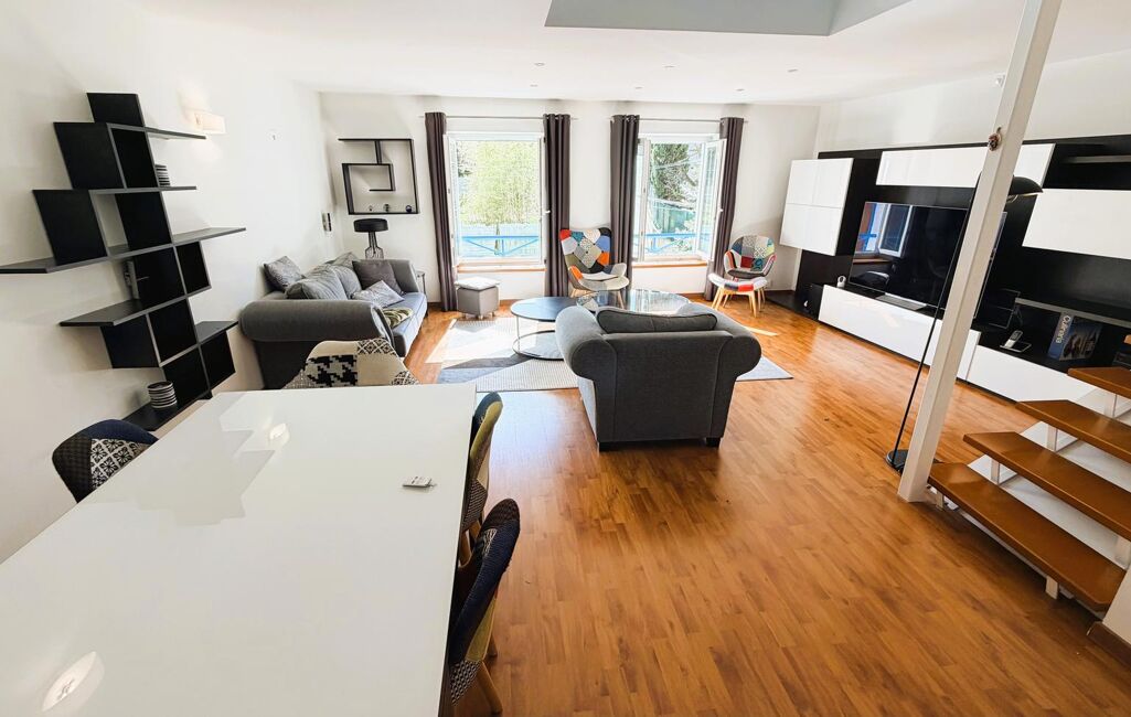 Dans une résidence intimiste, au 2emé étage en duplex, appartement atypique. pièce de vie, ouvert sur le salon/séjour avec cuisine équipée, cellier/buanderie, Wc séparée, salle d'eau. A l'étage nous avons un espace bureau, une chambre-salon TV, une suite parentale avec dressing et salle de bains (Wc,Baignoire et douche)