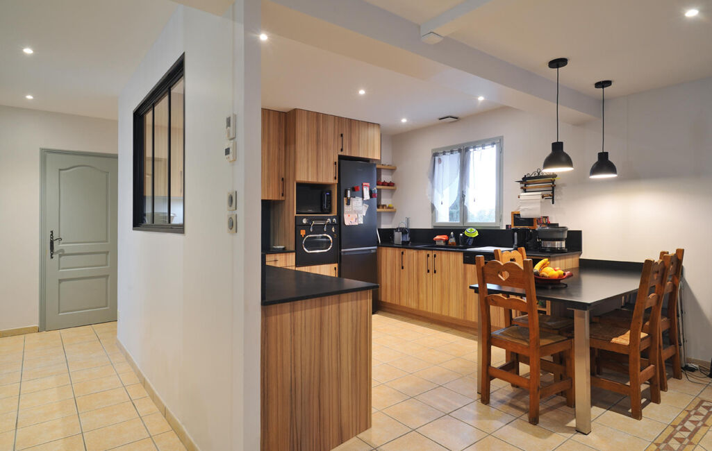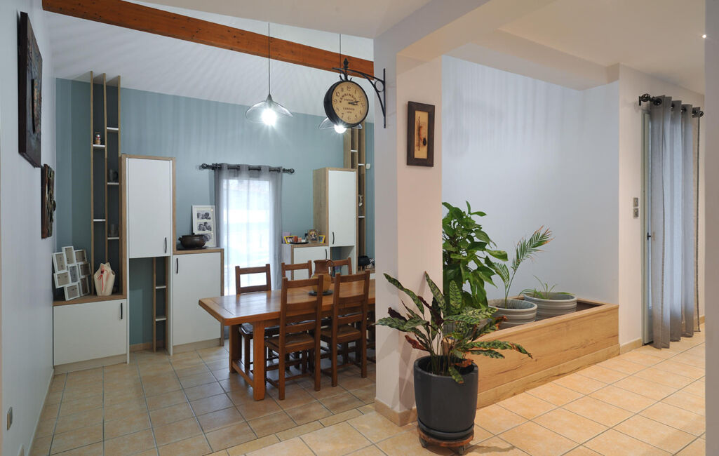 Dès l'entrée, vous serez immédiatement séduit par la superbe pièce de vie, baignée de lumière dont la salle à manger est sublimée par une belle hauteur sous plafond. Une cuisine américaine équipée, aussi fonctionnelle qu’élégante, Une salle à manger sophistiquée, offrant un accès vers l’extérieur, Un salon cosy ouvrant sur la