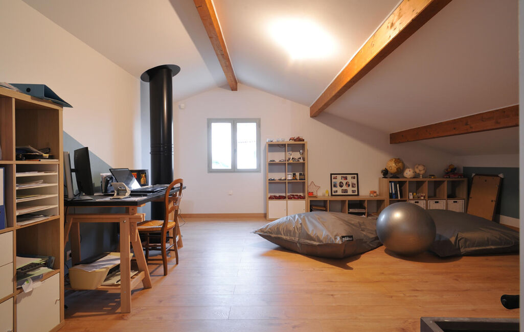 Espaces nuit confortables et modulables : 4 chambres spacieuses au premier étage, salle de bain moderne et toilette indépendant. Une belle chambre au dernier niveau, salle d’eau et toilette indépendante. Un espace bureau baigné de lumière, idéal pour le télétravail, ou transformable en salle de jeux ou sixième chambre selon vos envies.