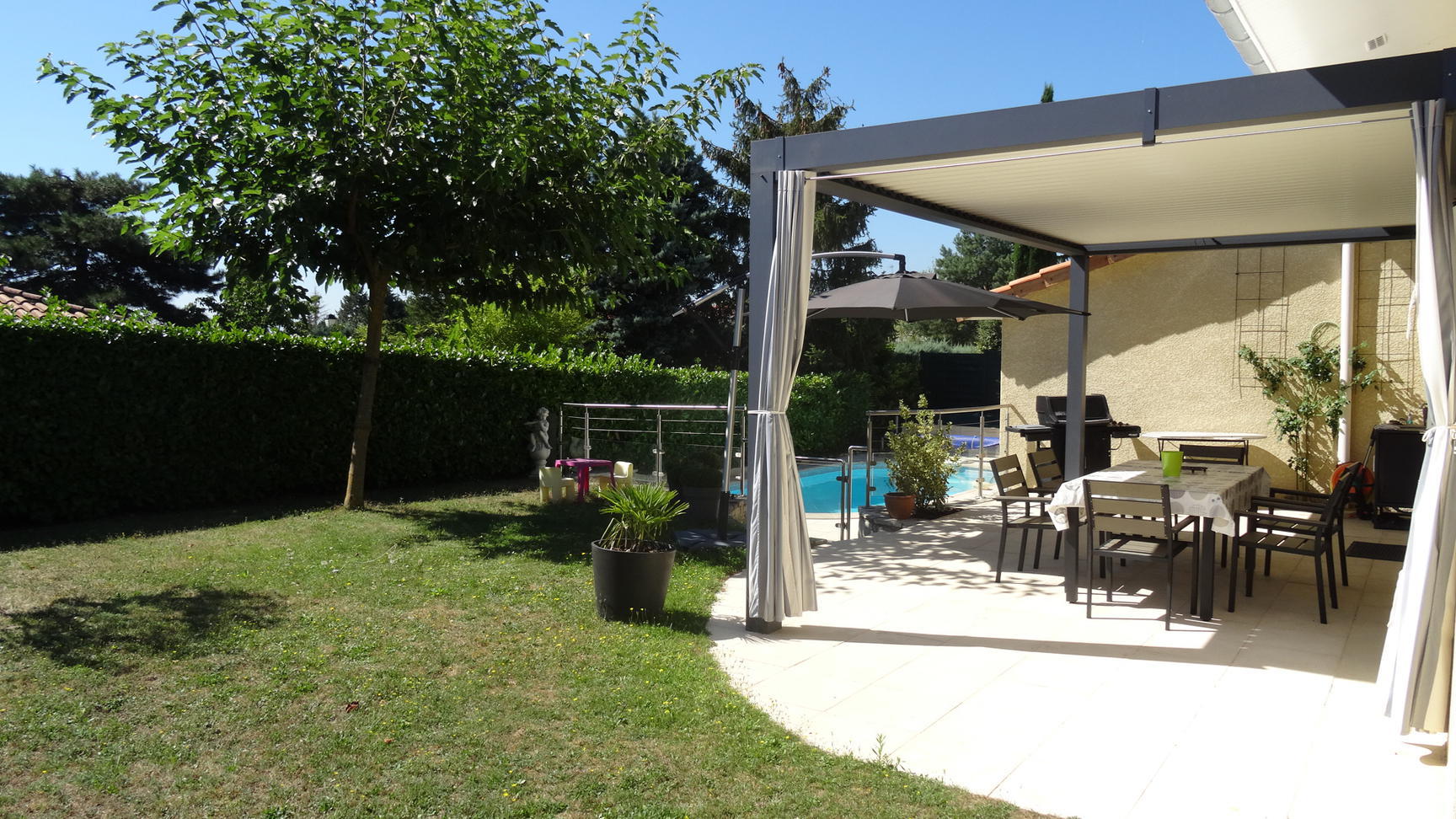 5 Chambres, 2 SDE, 1SDB. Salon/séjour Double. Cuisine aménagée neuve 14,5m² plus buanderie. Jardin 632m² avec piscine chauffée et pergola bioclimatique.