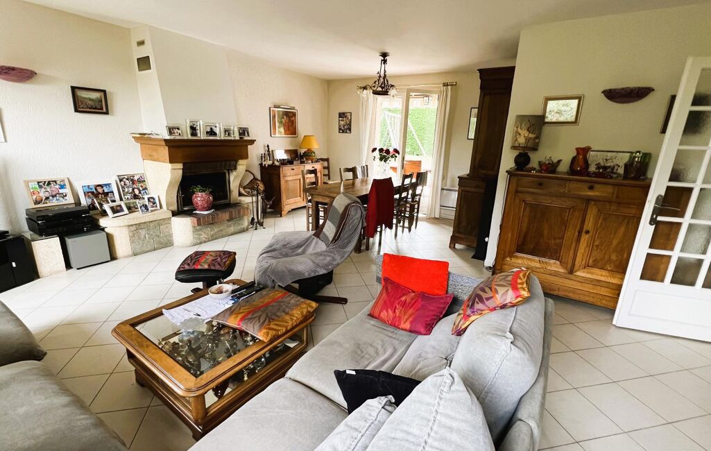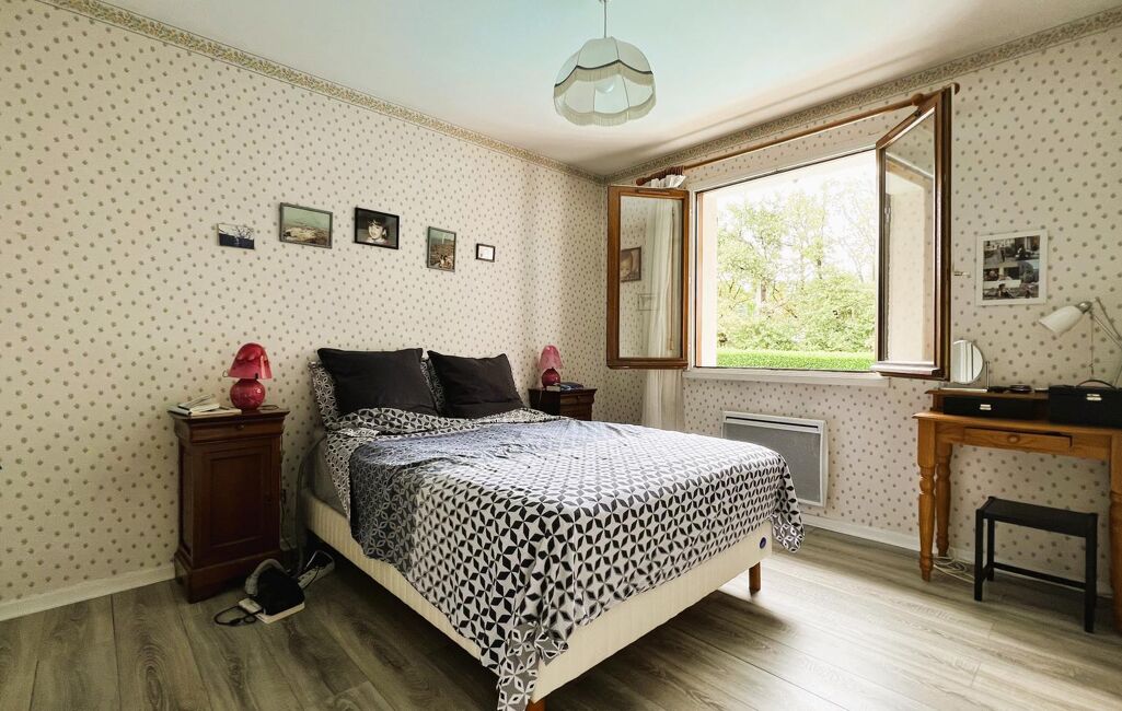 De plain-pied hall, salon/séjour, cuisine séparée aménagée, une Chambre, cellier buanderie. A l'étage 3 chambres, salle de bains et salle d'eau.